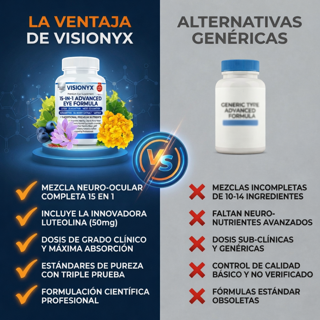 Visionyx contiene una combinación avanzada de nutrientes para la salud ocular, incluyendo: